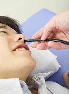 内視鏡は鼻にスムーズに挿入できる細さです。従来の内視鏡と比べて、細経化を実現することができましたので、苦痛・負担が少ないです。
